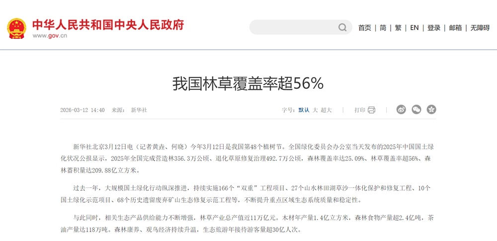 2026年我国国土绿化行动安排任务1亿亩左右